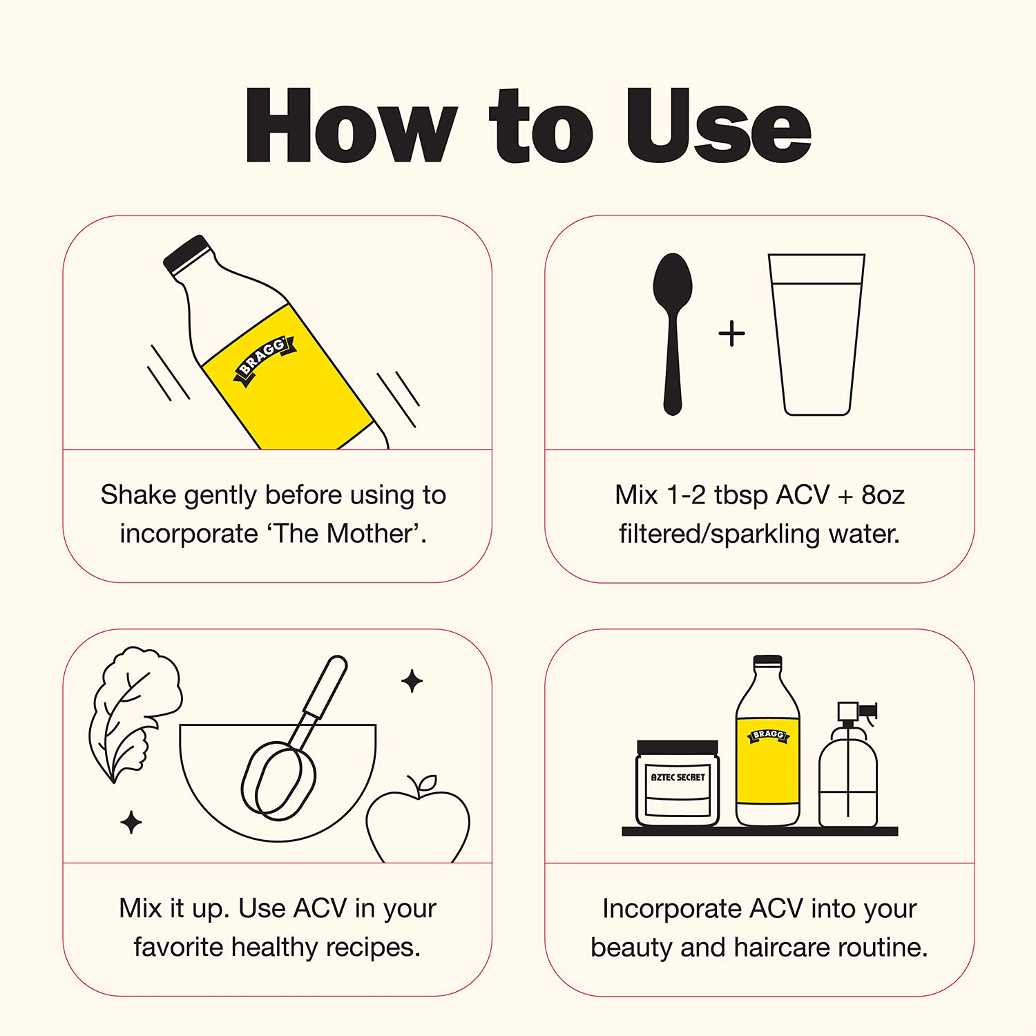 Bragg – Vinagre de sidra de manzana orgánico con la madre, producto orgánico certificado por el Departamento de Agricultura de los Estados Unidos (USDA), crudo, todos ingredientes naturales sin filtrar