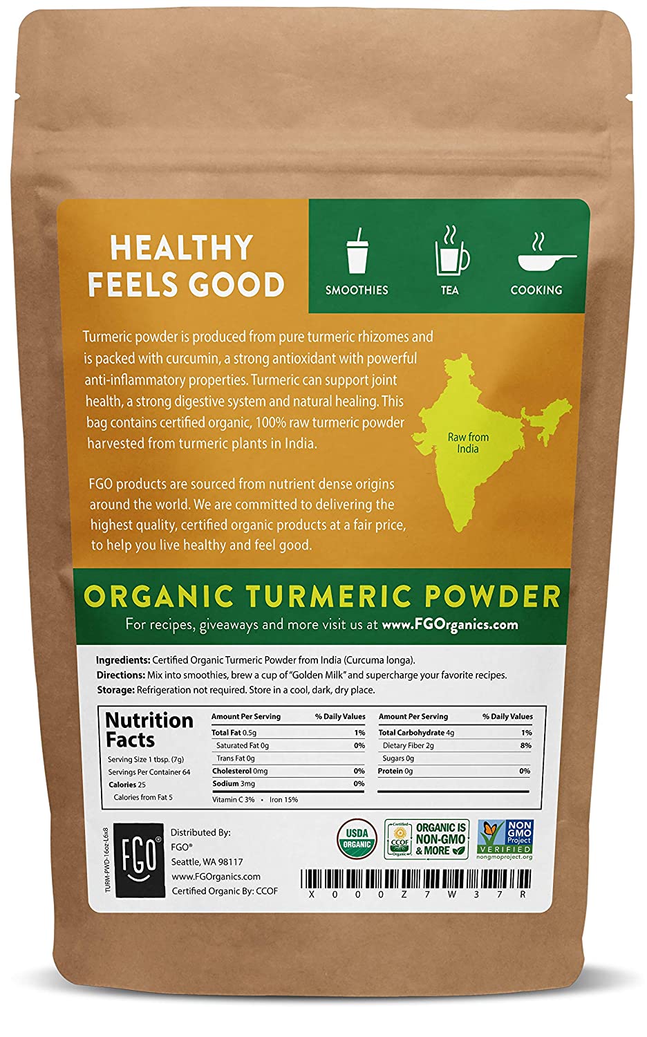- IMPORTED 100% RAW FROM INDIA – This bag contains certified organic, 100% raw turmeric powder harvested from turmeric plants in India.