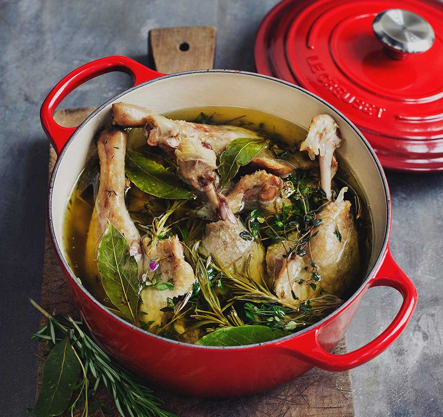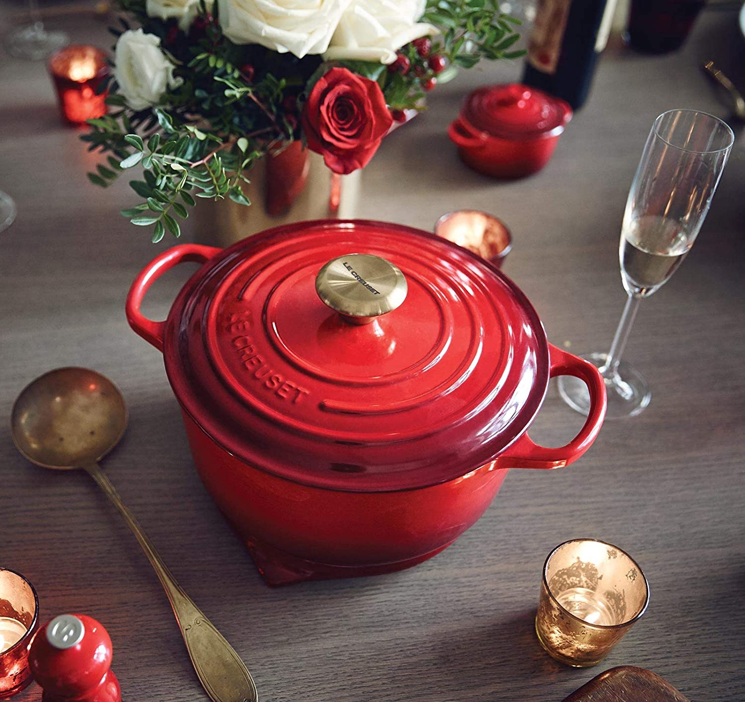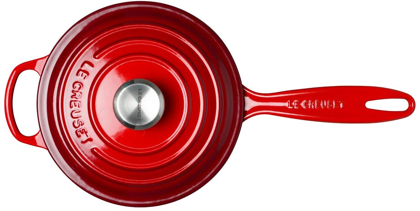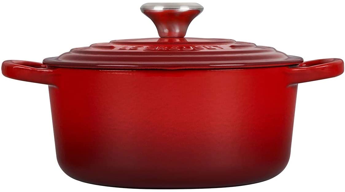 Le Creuset – Juego completo de utensilios de cocina (8 piezas, hierro fundido esmaltado, con botones SS, gres y antiadherente endurecido, antiadherente, color cereza