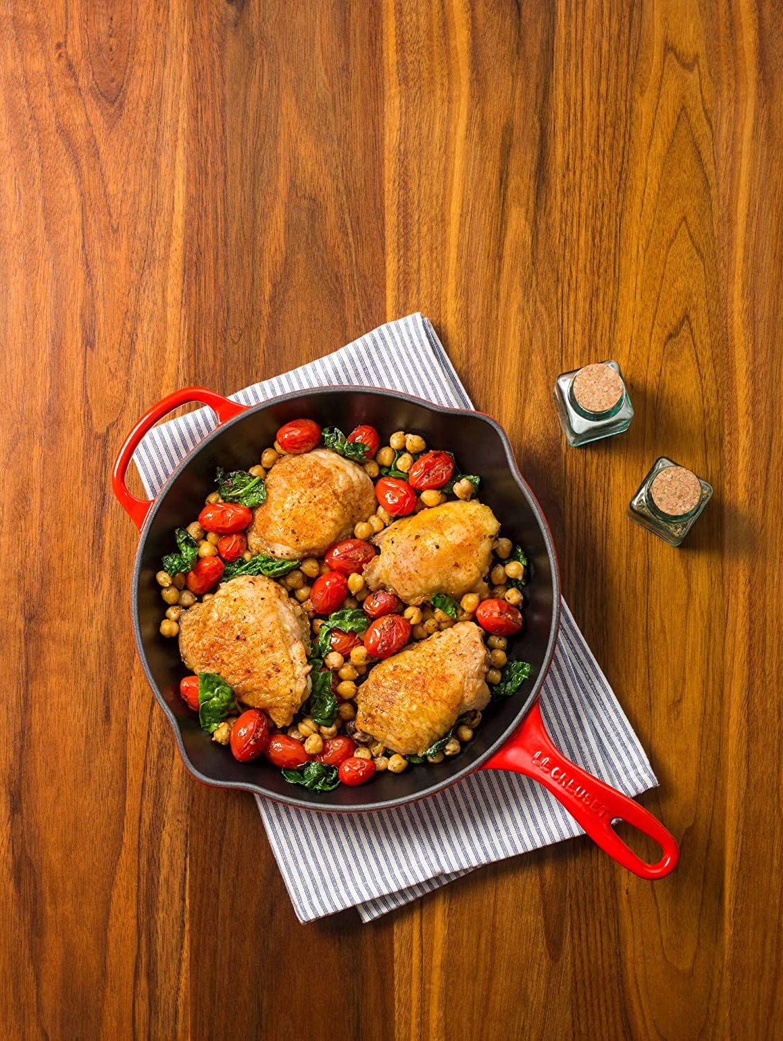 - Enameled cast-iron construction provides superior heat retention. Dishwasher safe for fast, convenient cleanup